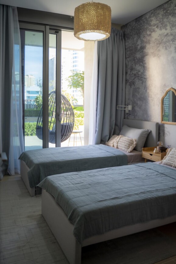 A beautiful 2 bedroom apartment overlooking the Marina and Bluewaters area in Dubai. Fully furnished and styled to be ready for Airbnb listing as a holiday home.